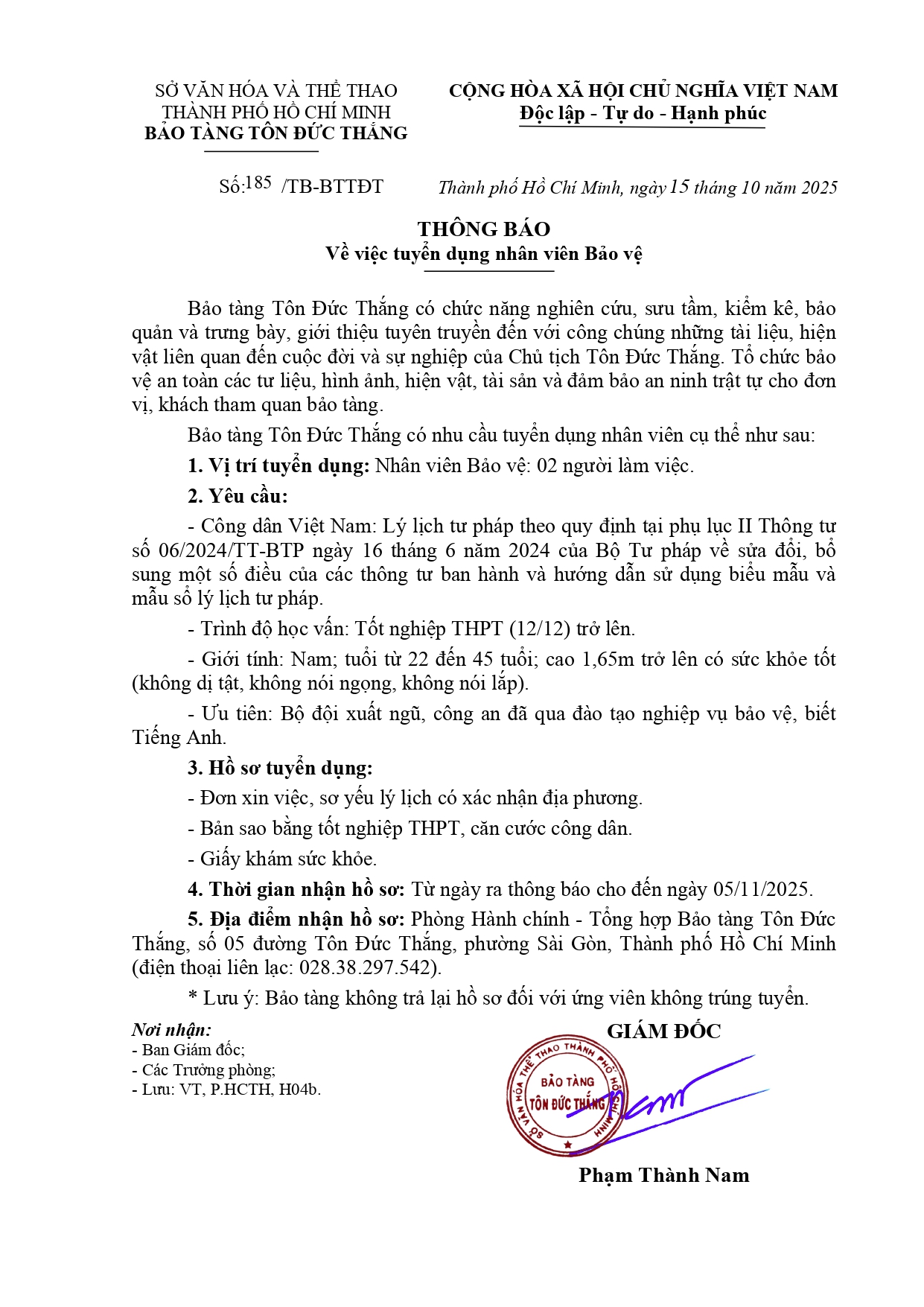 THÔNG BÁO TUYỂN BẢO VỆ